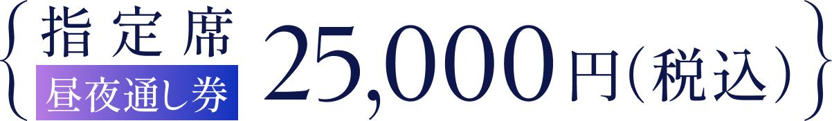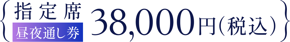 - 特典付き指定席(昼夜通し券)と指定席(昼夜通し券)の座席は、昼夜2公演同じ座席となります。通し券のチケットは1枚のみ発行となります。